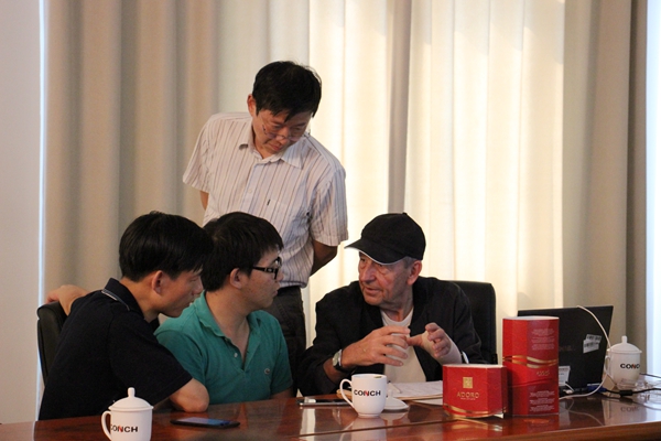 與外國專家、武漢建材設計院人員進行交流